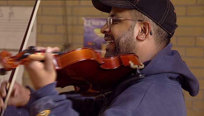 Im Anschluss kurzes Live-Konzert mit 15 Geigen und 2 Celli